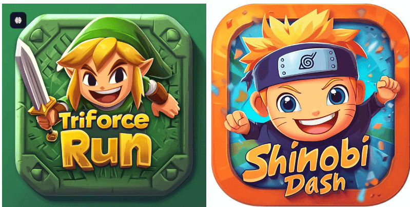 提示詞:色彩鮮豔、卡通風格的應用圖示設計,適用於[應用類型:遊戲、電影、美食、運動等]的logo,其方形按鈕正面印有[應用名稱]文字和[人物、符號或可愛物體+其姿勢或動作的簡短描述],背景顏色/主題簡潔。高解析度遊戲美術和圖形,適用於行動應用,皮克斯風格,逼真逼真。