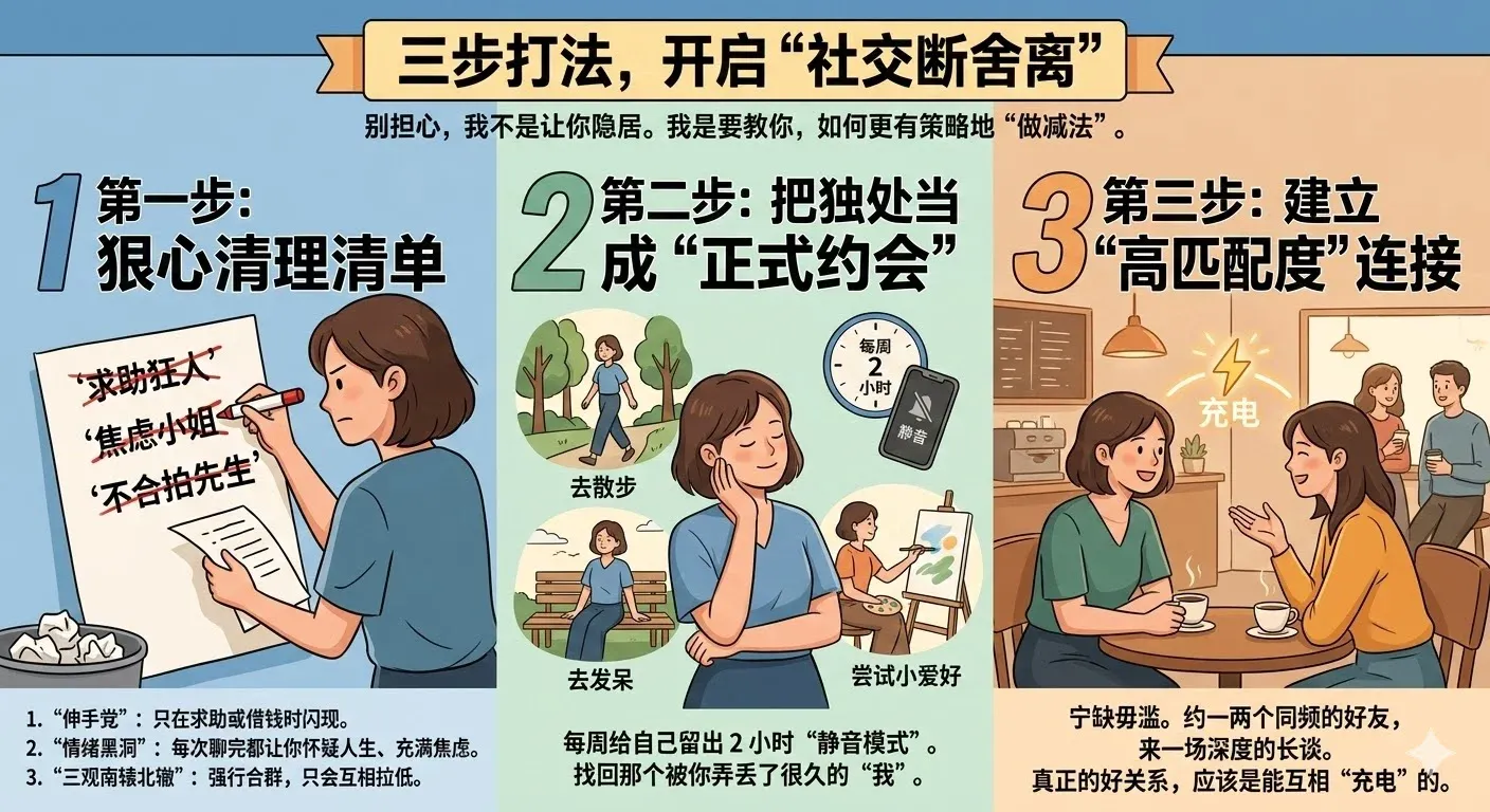别担心,不是让你瞬间变成社恐隐居,而是有策略地做减法。来,给你三步实用打法:
