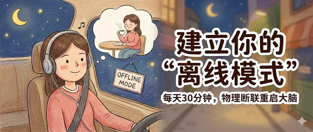 Blog 建议: 哪怕只是下楼喝杯咖啡,或者在车里听完一整张专辑。这种“物理断联”是重启大脑最快的方式。