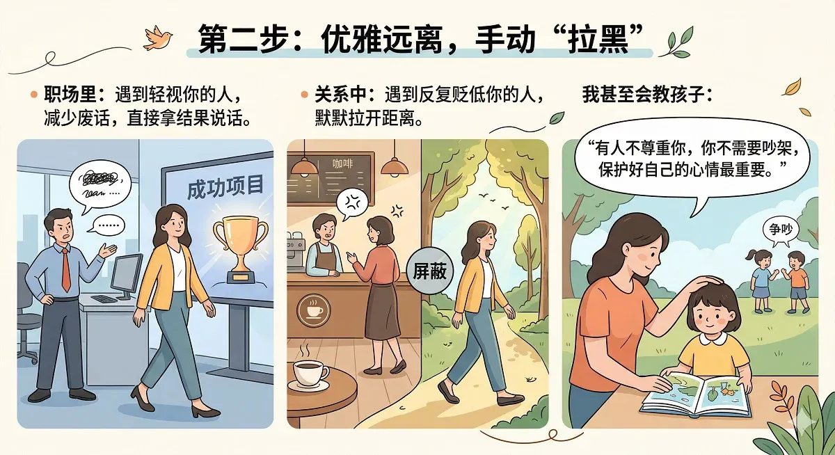 - 亲密关系中:如果朋友或家人反复贬低我,我会慢慢拉开距离,把时间留给真正尊重我的人。