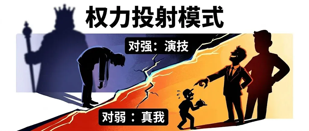 - 逻辑很简单: 面对比他强的人,他表现出的是“求生欲”和“演技”;只有面对比他弱的人,他表现出的才是真正的“自我”。