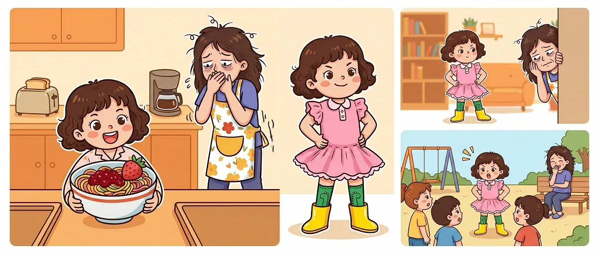 以前我像个全能保姆:早餐帮她配、衣服帮她挑、玩具帮她选,生怕她选错。结果呢?她一出门就拉着我的手:“妈妈,我要这个吗?我能玩那个吗?”活像个没电的遥控器。