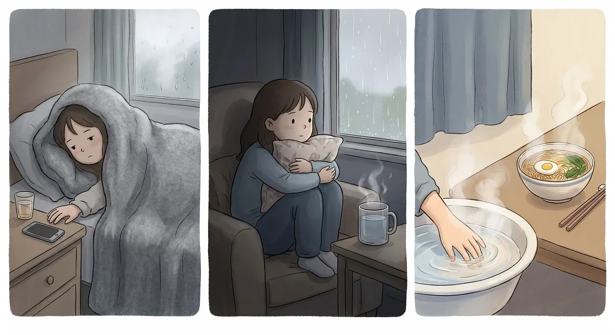 我给自己倒了杯温水,窝在沙发角落里,把手机调成静音。就让那股低落静静地陪着我吧。我没有问自己“为什么又这样”“你怎么这么没用”,也没有试图分析它从哪里来。我只是轻轻地对自己说: